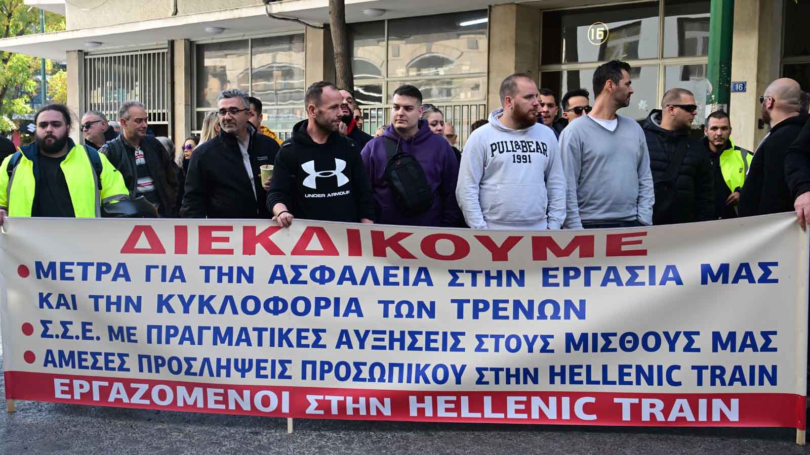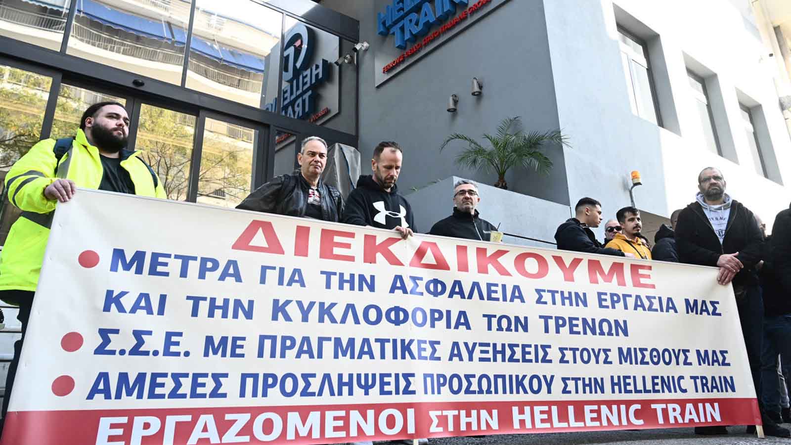 Συγκέντρωση έξω από τα κεντρικά γραφεία της «Hellenic Train» πραγματοποίησαν τα Σωματεία σιδηροδρομικών ΣΕΠ και ΠΕΠ της Hellenic Train, στο πλαίσιο στάσης εργασίας τους όπου απαίτησαν μέτρα για την ασφάλεια στην εργασίας και ΣΣΕ με αυξήσεις
