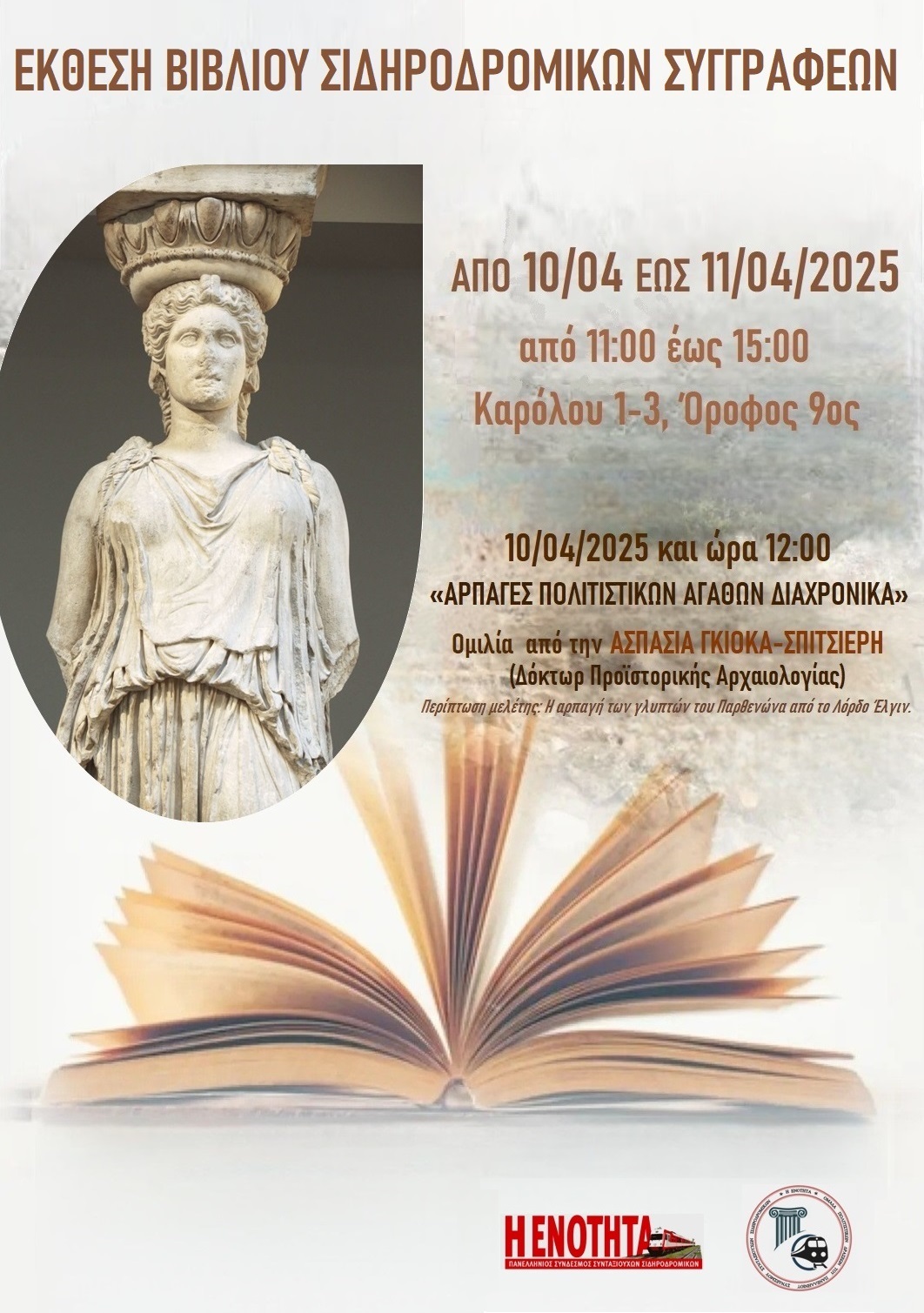 Η Ομάδα Πολιτιστικών Δράσεων της «ΕΝΟΤΗΤΑΣ» (Ο.ΠΟ.Δ.Ε.) διοργανώνει Έκθεση Βιβλίου Σιδηροδρομικών Συγγραφέων στις 10 και 11 Απριλίου 2025, στην αίθουσα εκδηλώσεων του κτηρίου του ΟΣΕ, 9ος όροφος.