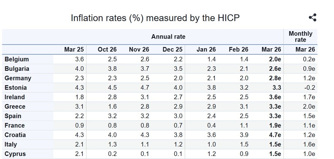 Αυξάνεται σταθερά ο πληθωρισμός στην Ελλάδα τον Μάρτιο του 2026, φτάνοντας στο 3,3% από 3,1% τον Φεβρουάριο, σύμφωνα με τα στοιχεία της Eurostat. Αντίστοιχα, στην Ευρωζώνη ο πληθωρισμός διαμορφώθηκε στο 2,5%, σημειώνοντας επίσης σημαντική αύξηση σε σχέση με το 1,9% του προηγούμενου μήνα.